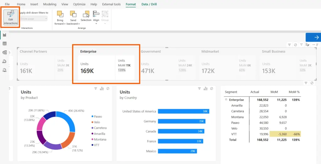 - Mejor control de interacciones con otros visuales mediante “Edit interactions”