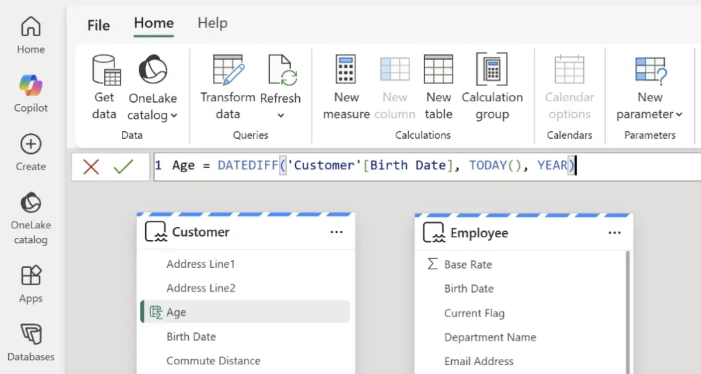 Una de las mejoras más técnicas de esta actualización llega con Direct Lake en OneLake. Se introducen columnas y tablas calculadas que no requieren materialización, lo que permite ampliar modelos sin penalizar el rendimiento.